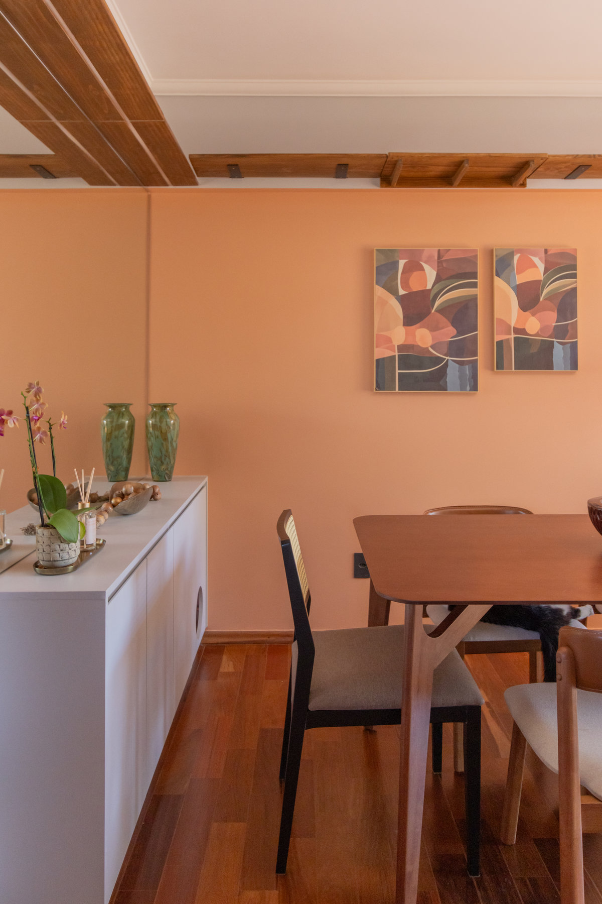 Misturamos móveis novos com peças cheias de história, e o mesmo vale para a decoração: respeitamos as memórias e realçamos a personalidade da moradora com novos toques, criando um lar que é, ao mesmo tempo, renovado e fiel às suas raízes.