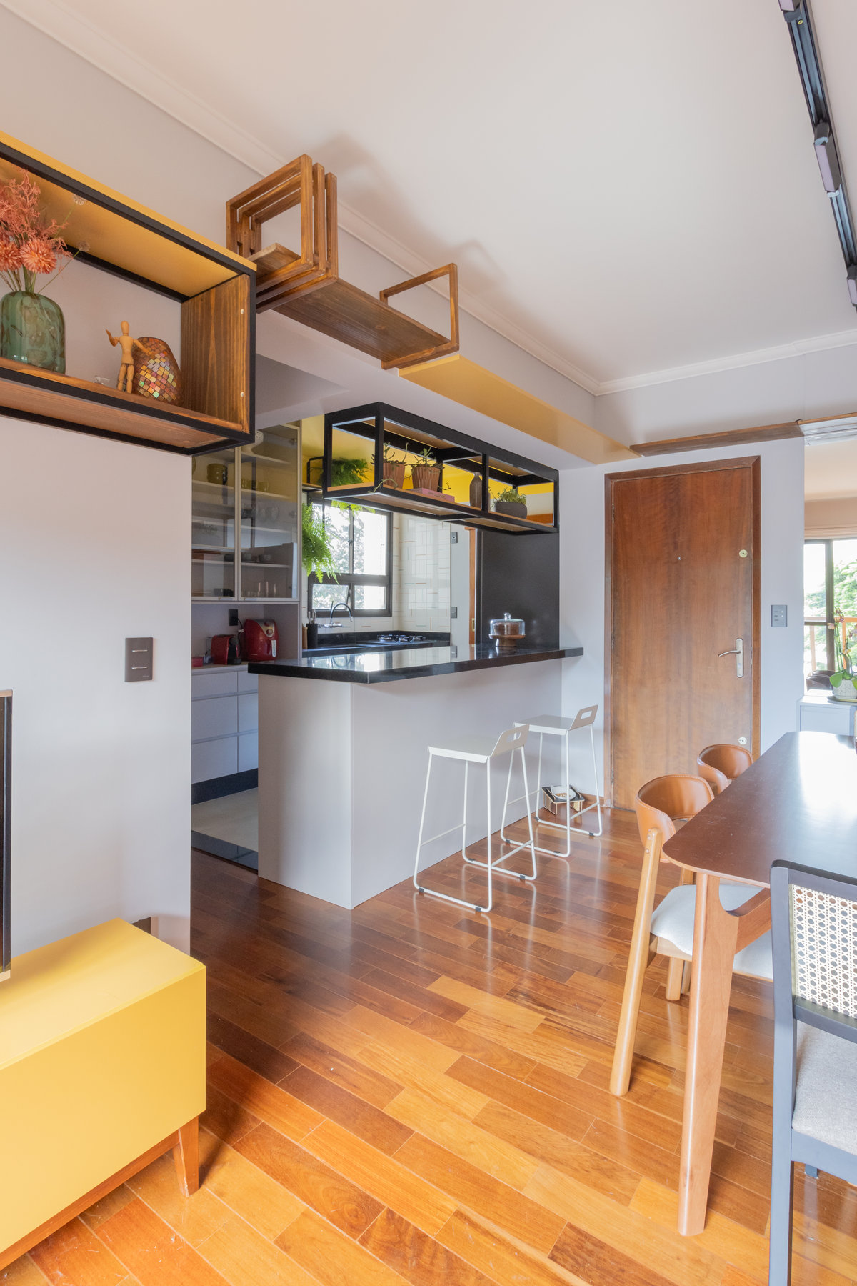 Seus pedidos eram claros: uma cozinha aberta, um lar com muita personalidade e, claro, atenção especial aos gatinhos da casa. Com cuidado e empatia, atendemos a todos eles.